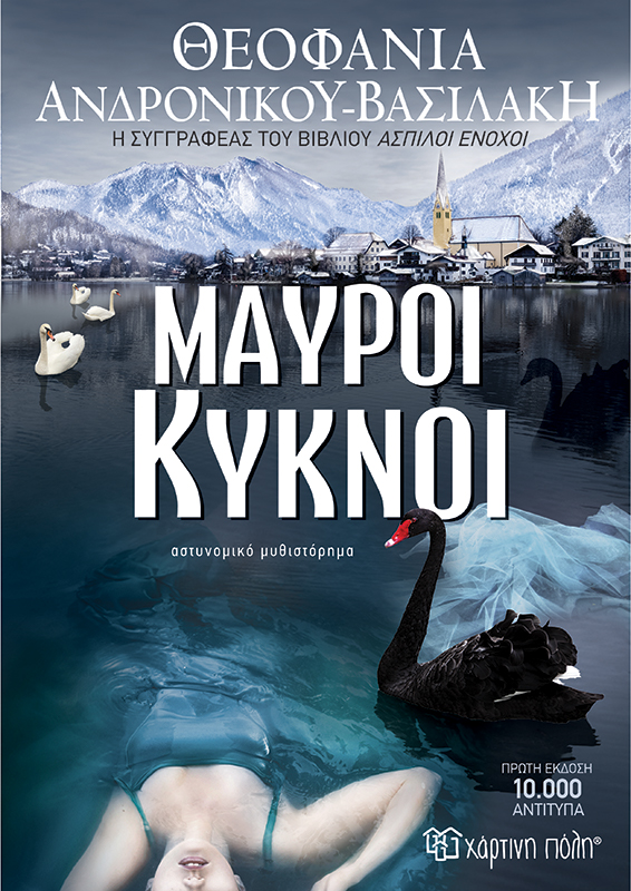 9-Από τις Εκδόσεις Χάρτινη Πόλη κυκλοφορεί το βιβλίο «Μαύροι Κύκνοι» της συγγραφέως Θεοφανίας Ανδρονίκου-Βασιλάκη. Μια ανάσα πριν τα Χριστούγεννα ‘19. Η αστυνόμος Ιόλη Νάτσιου αναγκάζεται να επιστρέψει στην χώρα που γεννήθηκε, στο Τέγκερνζι της Γερμανίας, όπου την περιμένουν επώδυνες αναμνήσεις και τραύματα ανοιχτά. Την παραμονή ανασύρεται από την λίμνη νεκρή μία γυναίκα και δίπλα της ένα νυφικό.
